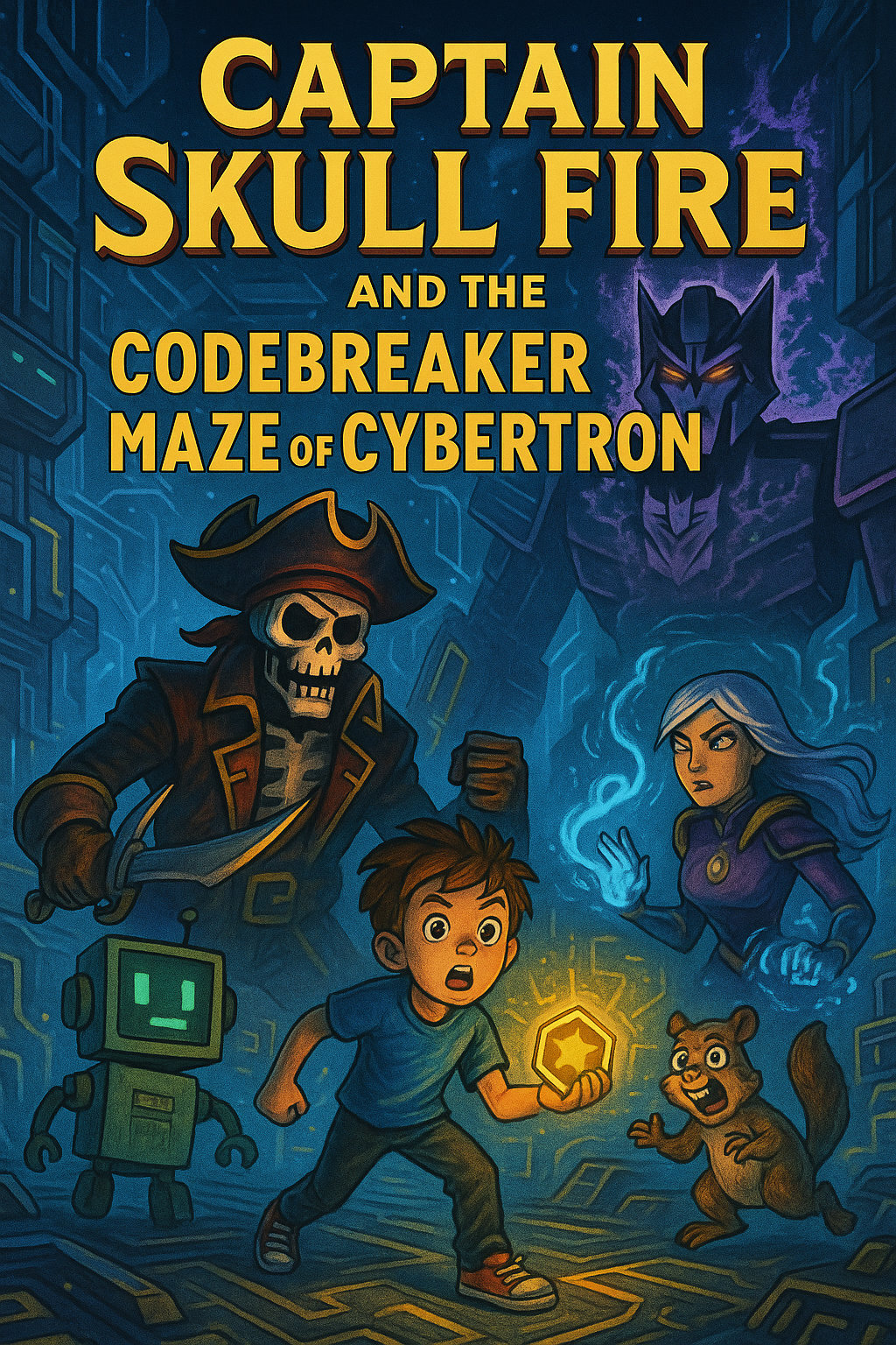 Finally, they reached the maze’s heart: a glowing arena with silver walls and a floating DJ booth. From a burst of smoke emerged the Decepti-Dance Team—four evil robots with neon mohawks and roller skates.