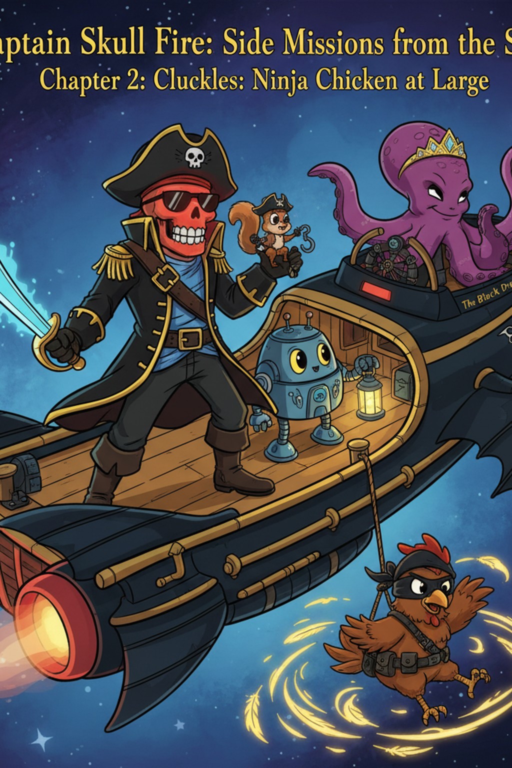 Later that night, Cluckles strutted through the ship wearing a new black belt tied around his middle.