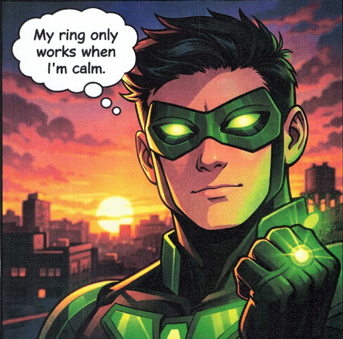The mentor hero shows that his power only works when he is calm. Power is linked to regulation.